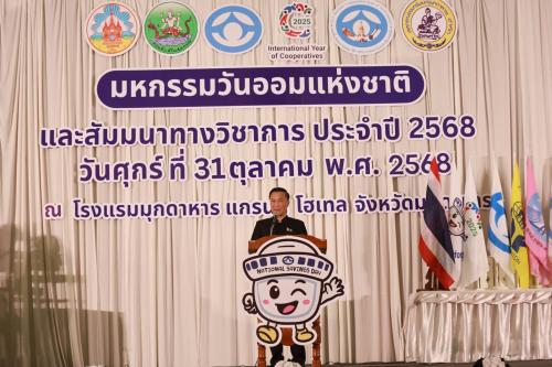 👩💼 นายทรงศักดิ์ ทรงศรี รัฐมนตรีช่วยว่าการกระทรวงมหาดไทย เป็นประธานเปิดงาน “มหกรรมวันออมแห่งชาติและสัมมนาวิชาการ ประจำปี 2568” ภายใต้แนวคิด “พลังสหกรณ์ ส่งเสริมความมั่นคงทางการออมให้คนไทย” โดยมีนายวรญาณ บุญณราช ผู้ว่าราชการจังหวัดมุกดาหาร กล่าวต้อนรับ พร้อมด้วยภาคีเครือข่ายสหกรณ์ภาคตะวันออกเฉียงเหนือ ภาครัฐ ภาคเอกชน และประชาชนชาวมุกดาหารเข้าร่วมงานอย่างคึกคัก